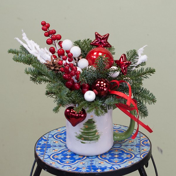 Новогодняя композиция "Чашка-елка" станет отличным дополнением к вашему новогоднему декору и подарит вам и вашим близким незабываемые эмоции и впечатления.