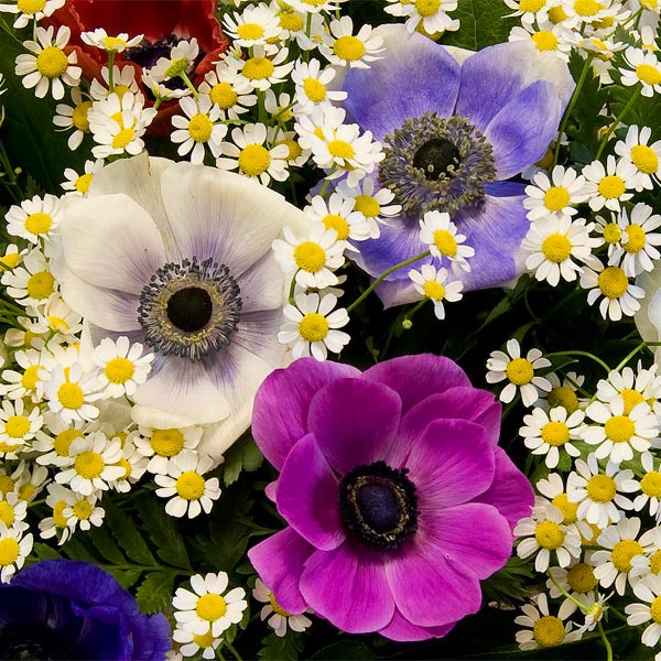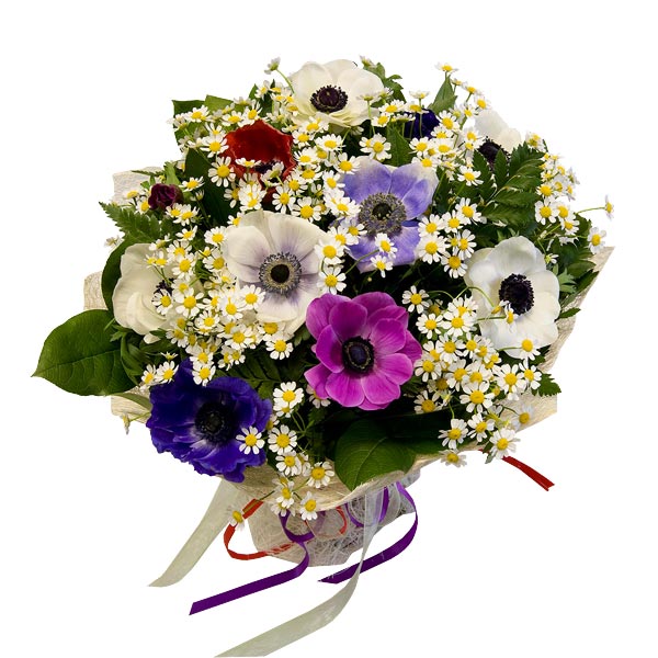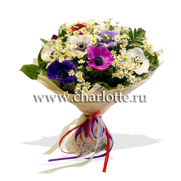 Букет из анемонов и ромашек "Дочь ветров"