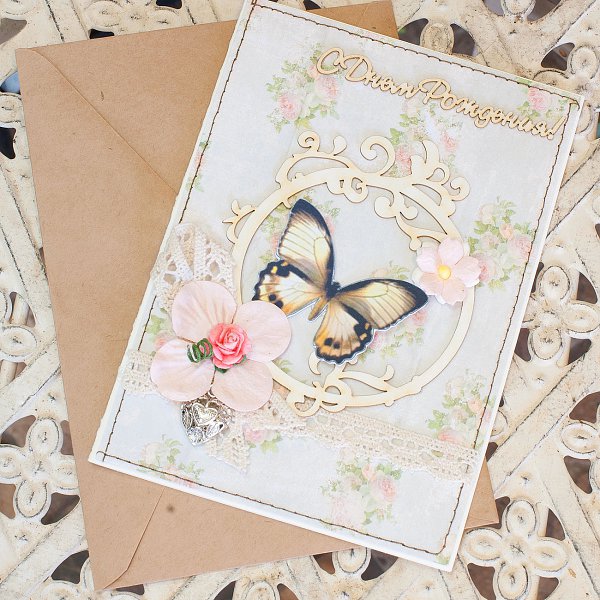 Открытка ручной работы "С Днем рождения!"(артикул 1020-C)
