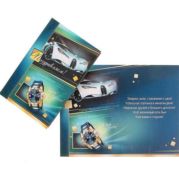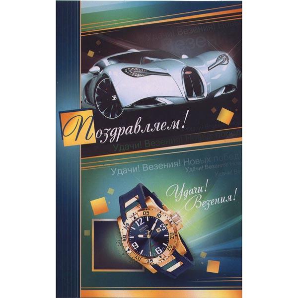 Открытка "Поздравляем "Удачи! Везенья!"(артикул 1024-C)