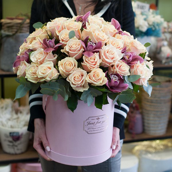 Коробка из роз и орхидей "Ираида"
