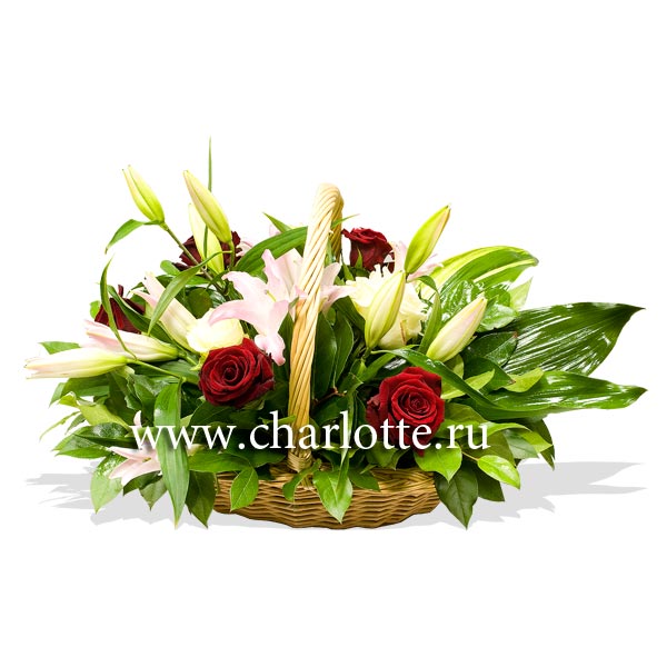 Корзина из лилий и роз "Калифорния"(артикул 1062-C)