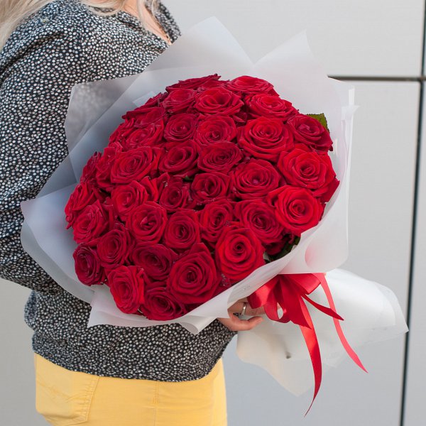 Букет из красных роз "Red Pearl"(артикул 114-C)