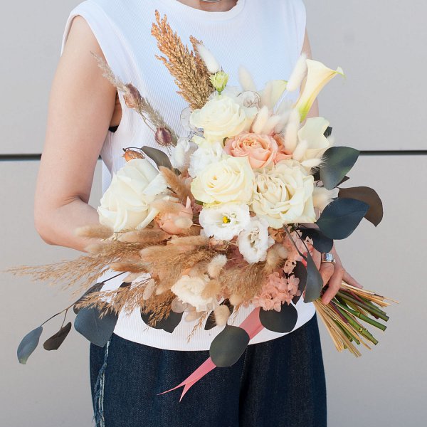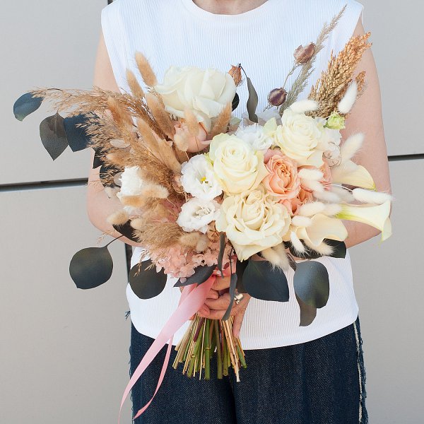 Букет невесты "Сильвана" – это изысканный и стильный выбор для любого свадебного торжества. Элегантный и утонченный стиль подчеркнет ваш неповторимый образ и станет ярким акцентом на вашем празднике.