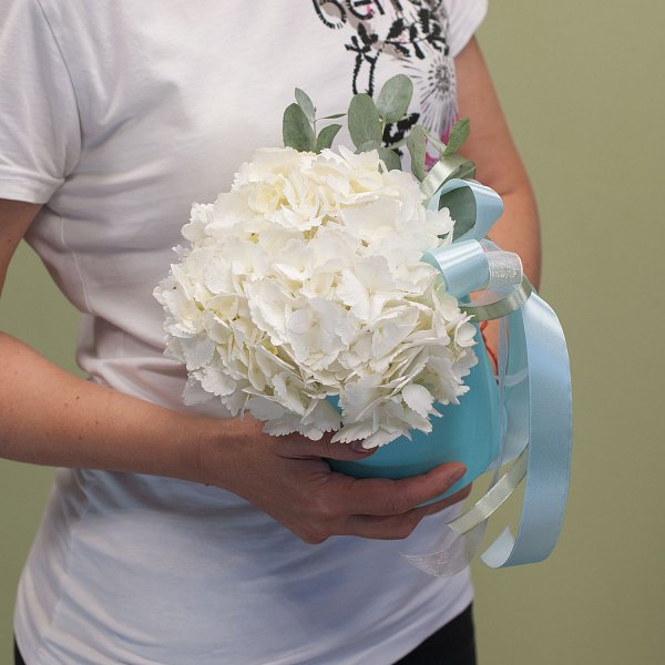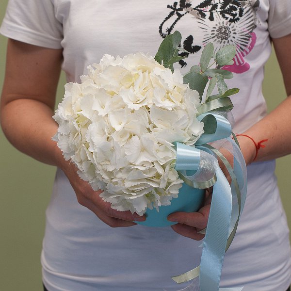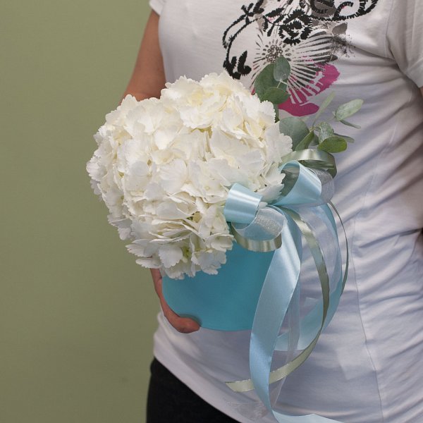 Коробка с цветами "Белая гортензия"(артикул 1188-C)