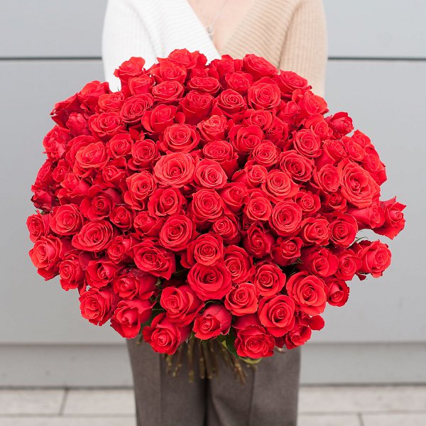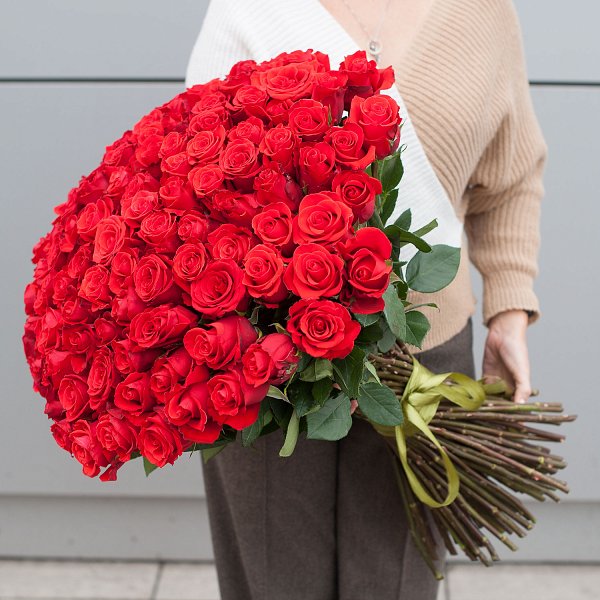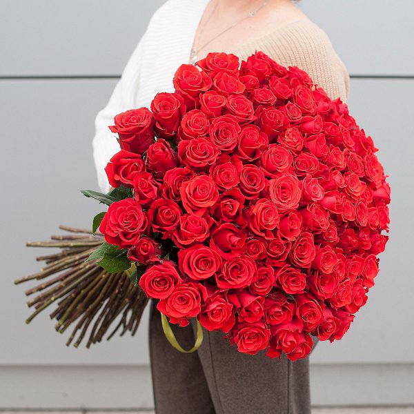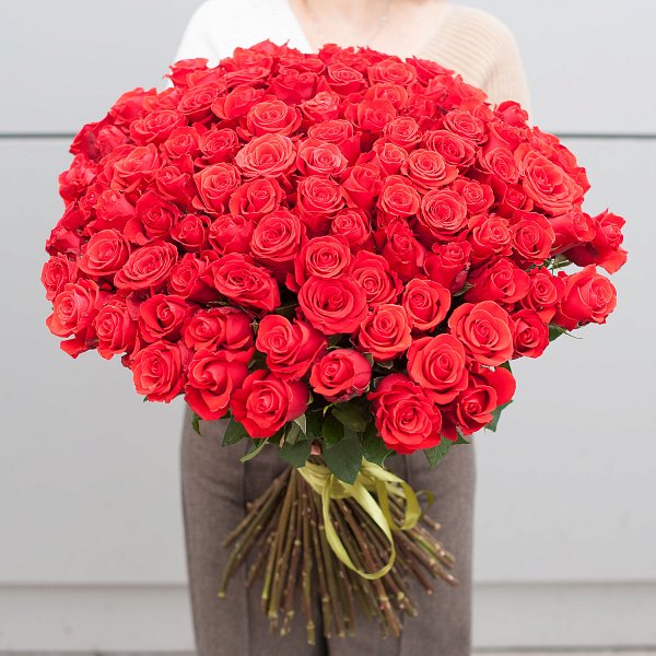 Букет состоит из 101 красной розы, что делает его ярким и запоминающимся. Розы премиум класса, выращенные в Эквадоре, отличаются своей красотой и ароматом.