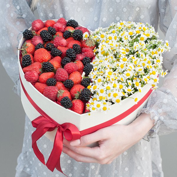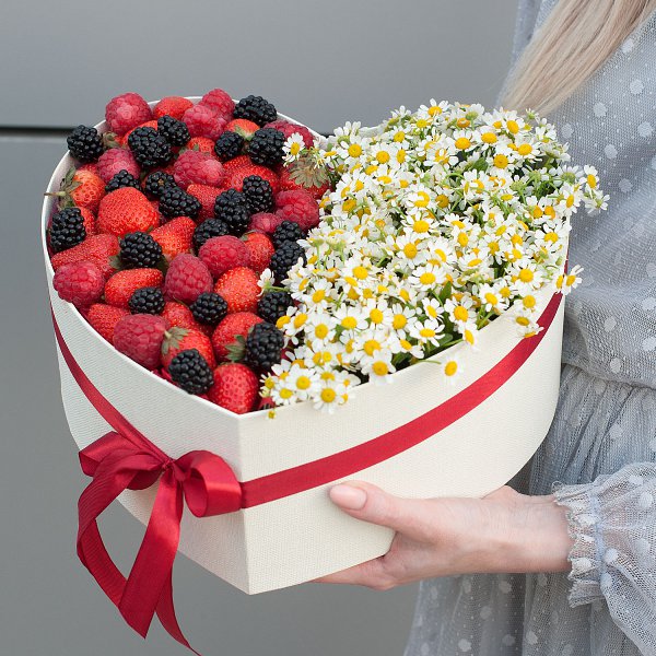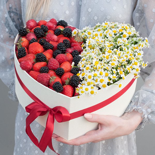 Коробка с цветами и ягодами "Ягодная ромашка"