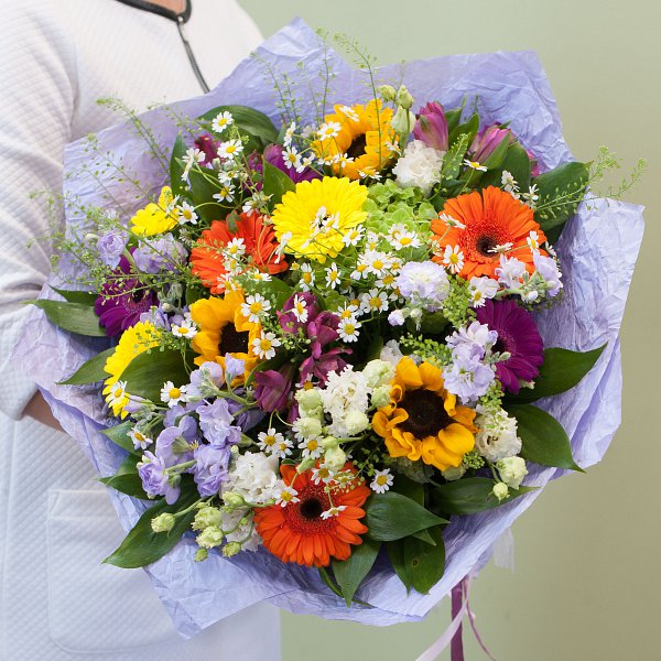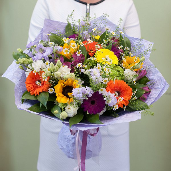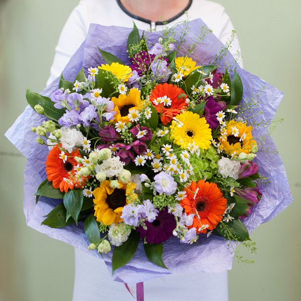 Букет цветов "Теплое лето" - это уникальное сочетание свежих и ароматных цветов, которые подарят радость и теплоту вашим близким.