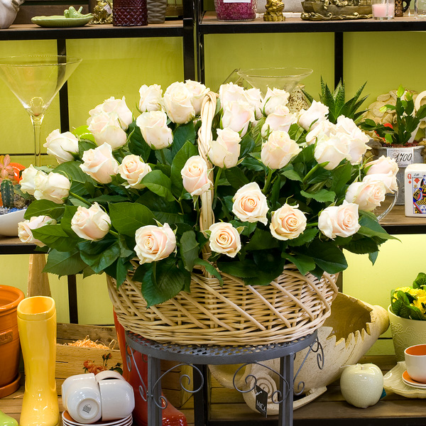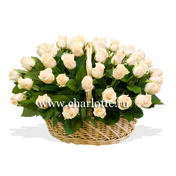 Корзина из роз "Crema de la crema" (51, 101, 151)(артикул 140-C)