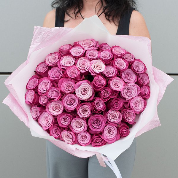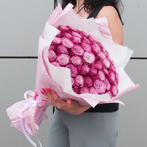 Монобукет состоит из роз фиолетового цвета, что придает ему неповторимый и роскошный вид.