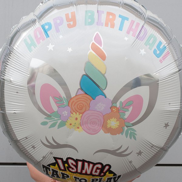 Большой музыкальный фольгированный шар размером 71 см с нежным единорогом. При ударе по шару звучит песня - Happy Birthday To You. Ч тобы заиграла песня нужно просто хлопнуть по шару. Шар имеет встроенный клапан, что упрощает надувание. Шар продается ненадутым, предназначен для надува гелием.