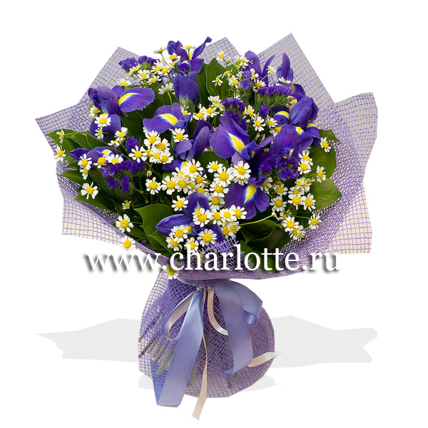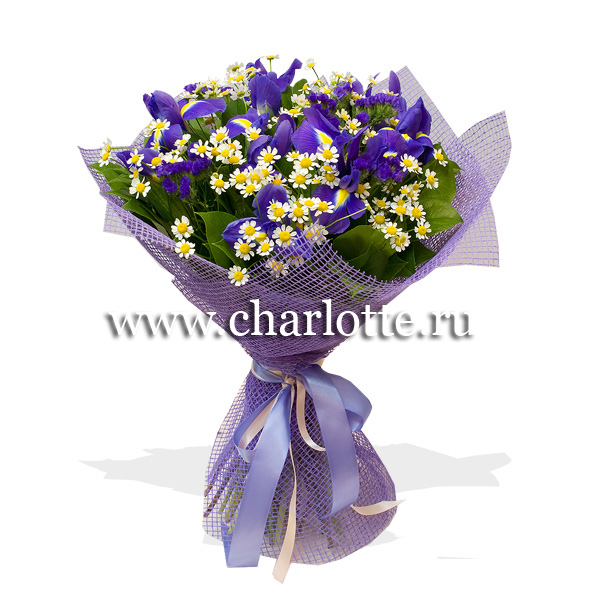 Букет из ромашек и ирисов"Летняя прохлада"(артикул 1508-C)