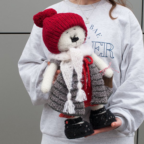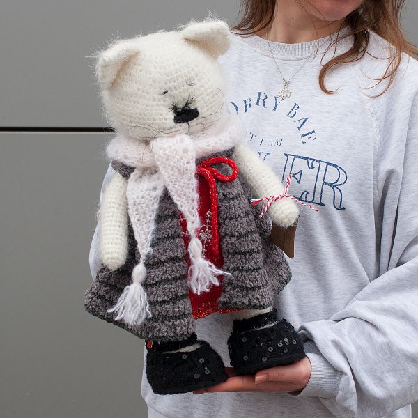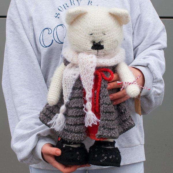 Игрушка ручной работы "Кошка красная"