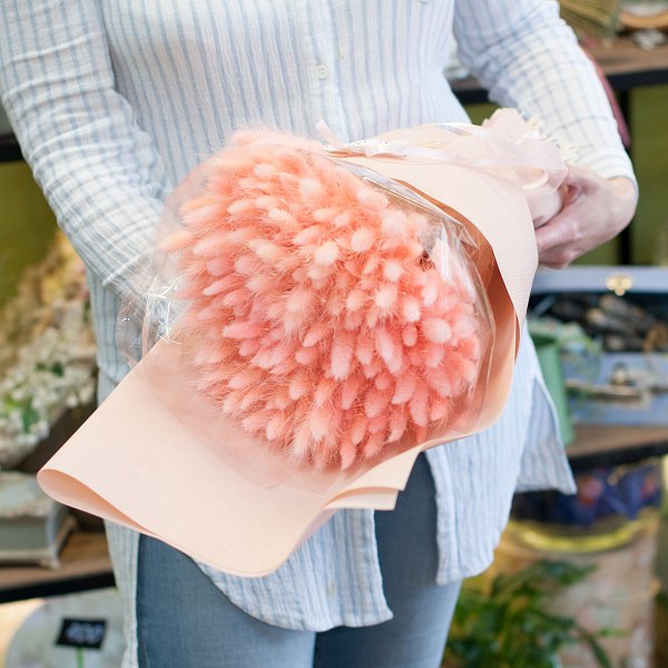 Букет из сухоцветов-лагурусов в персиковых тонах.