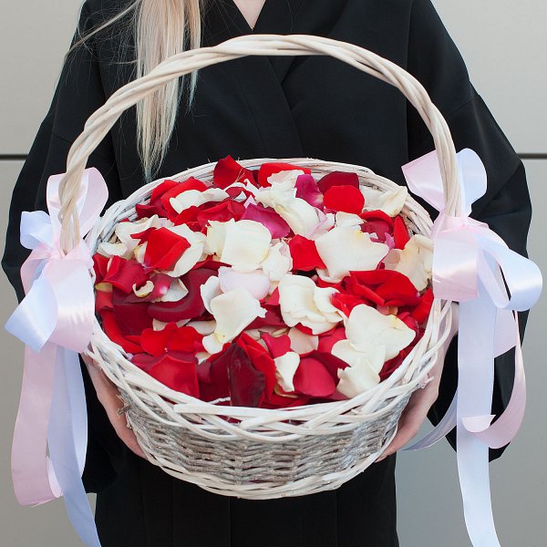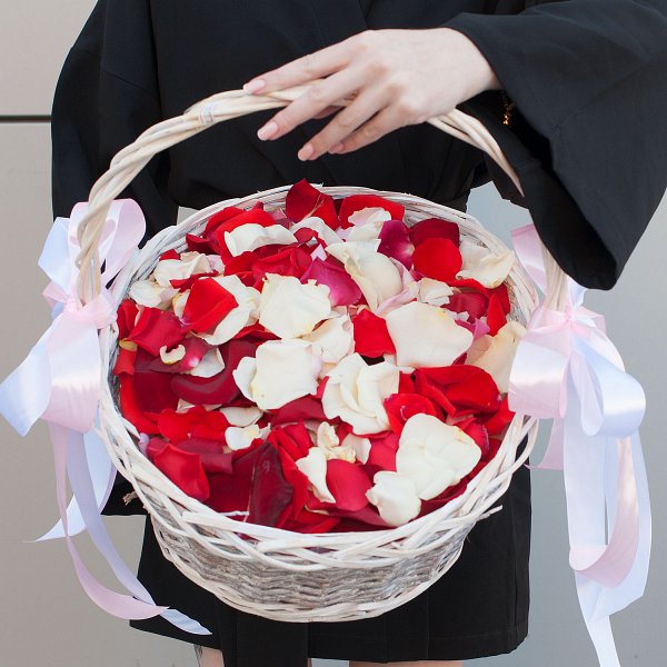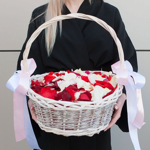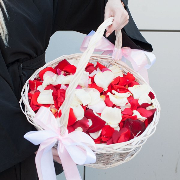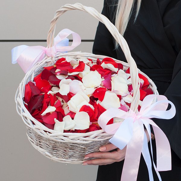 Лепестки роз в корзине