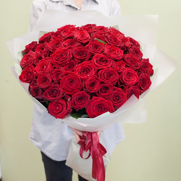 Букет состоит из 51 красной розы Ред Наоми, которые символизируют любовь, страсть и уважение. Эти розы обладают насыщенным и ярким цветом, что делает их особенно привлекательными и запоминающимися.