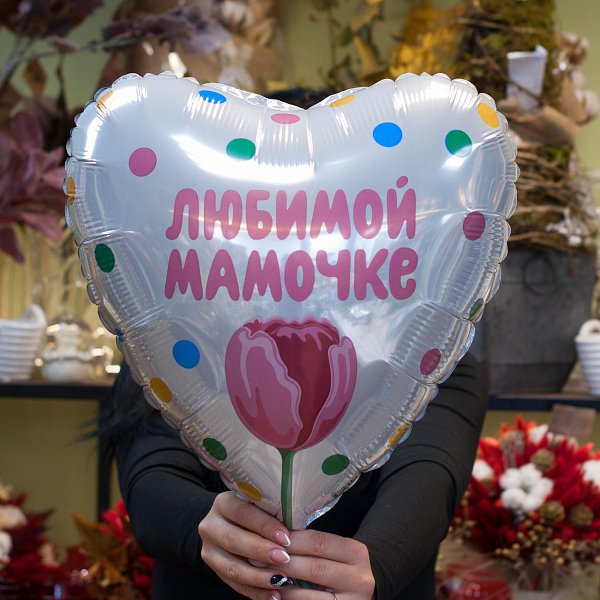 Фольгированный шар размером 30 см с надписью "Любимой Мамочке"