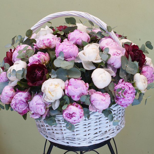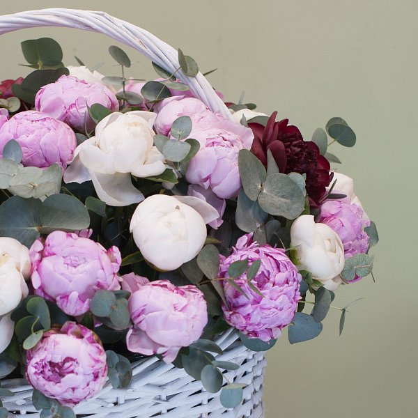 Корзина с пионами "Волшебная" - это уникальное сочетание красоты и изящества.