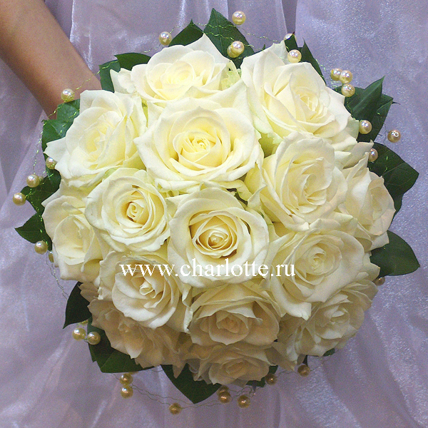 Снежно-белые розы, что может быть лучше для свадебного букета невесты!
