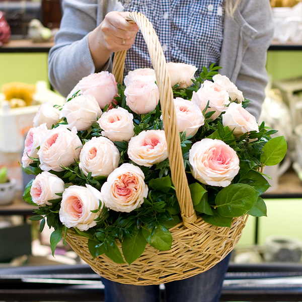 Корзина из пионовидных роз "Цветочная фея"(артикул 1637-C)