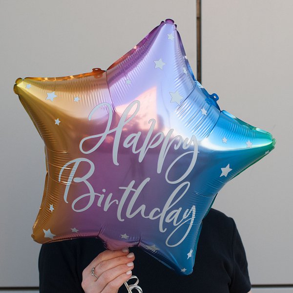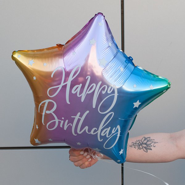 Фольгированный шар-звездочка "Happy birthday!" станет отличным выбором для украшения дня рождения и подарит массу положительных эмоций всем гостям.