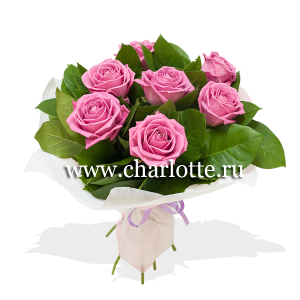 Букет из ярко-розовых роз с зеленью в подарочной упаковке. По Вашему желанию цветовую гамму букета можно изменить, для этого звоните в наши салоны цветов или указывайте в разделе "комментарии для флориста" при заказе через интернет.