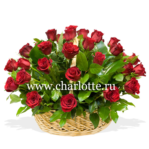 Корзина из красных роз (премиум класса) с зеленью. По Вашему желанию цветовую гамму композиции можно изменить, для этого звоните в наши салоны цветов или указывайте в разделе "комментарии для флориста" при заказе через интернет.