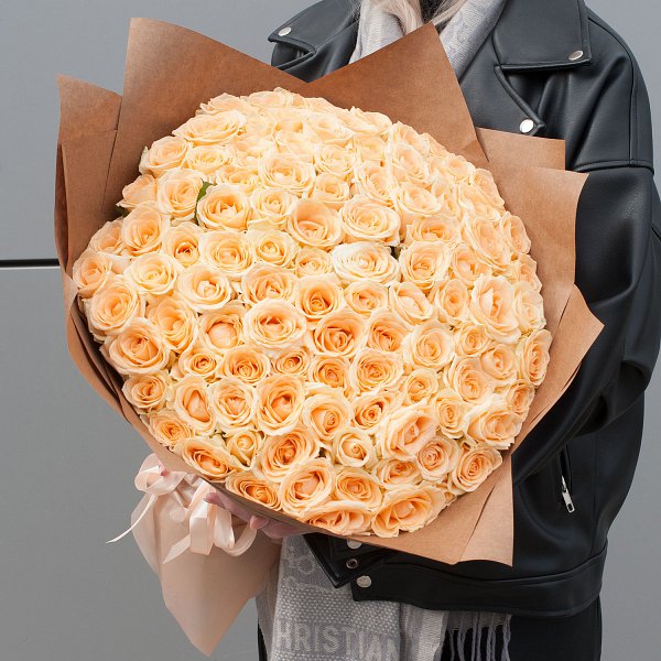 Букет из чайных роз сорта Аваланж Пич (101 роза) "Персиковый рай" - это уникальное сочетание красоты и вкуса. Этот букет станет отличным подарком на любой праздник или торжество, будь то день рождения, день свадьбы, день семьи, день учителя, рождение ребенка, юбилей или просто знак внимания для любимого человека.