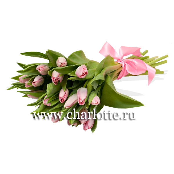 Букет из розовых тюльпанов с лентой. По Вашему желанию цветовую гамму букета можно изменить, для этого звоните в наши салоны цветов или указывайте в разделе "комментарии для флориста" при заказе через интернет.
