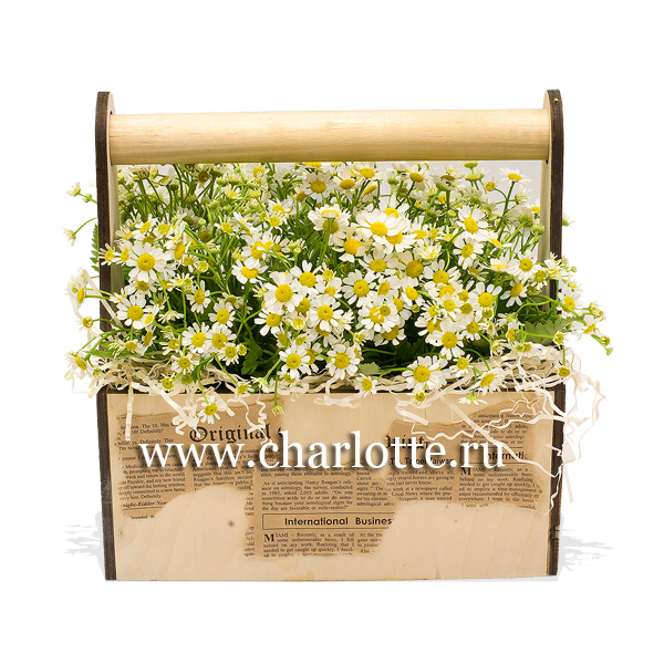 Полевые ромашки в деревянном ящике.