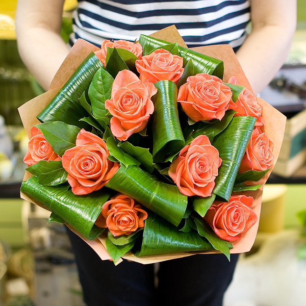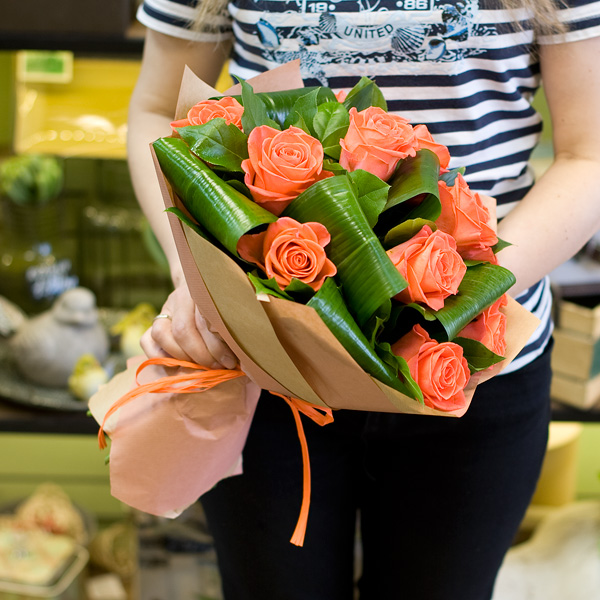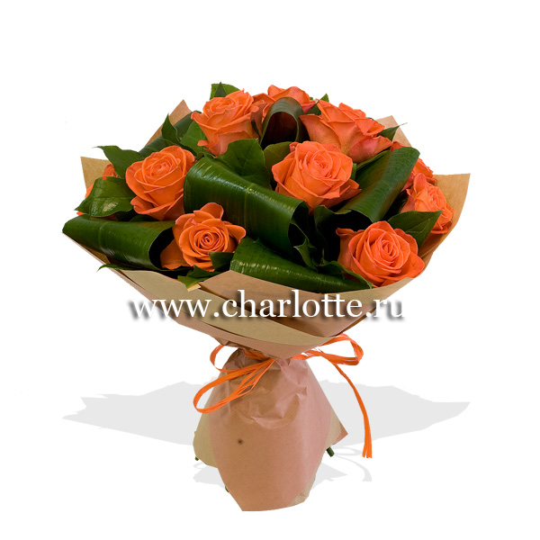 Букет из ярко-оранжевой розы с декоративной зеленью в подарочной упаковке. По Вашему желанию цветовую гамму букета можно изменить, для этого звоните в наши салоны цветов или указывайте в разделе "комментарии для флориста" при заказе через интернет.