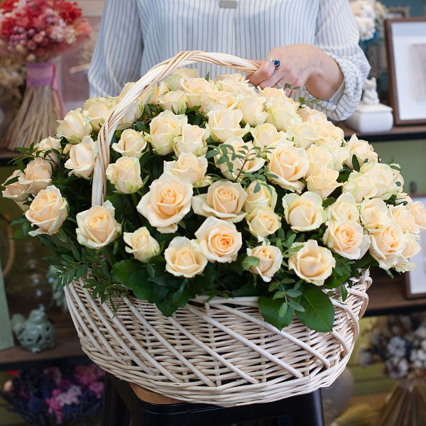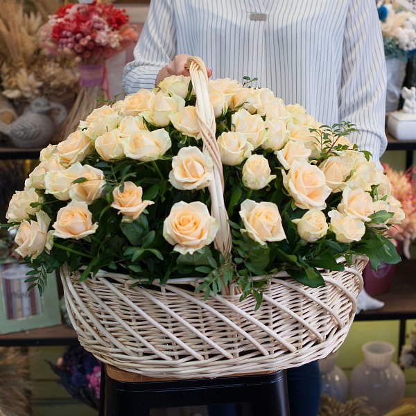 Особенность этого товара - использование 101 розы сорта "Пич". Этот сорт роз отличается своим насыщенным и сладким ароматом, который будет радовать получателя на протяжении всего времени, пока цветы стоят в вазе.