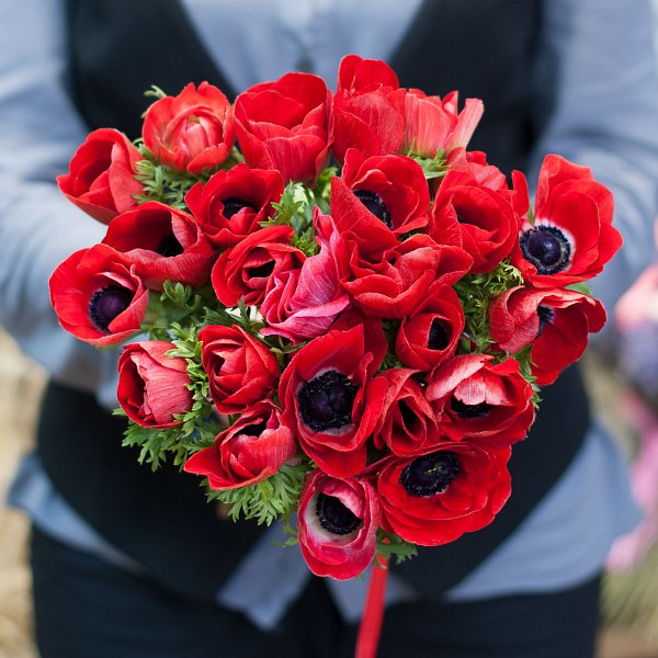 Букет из анемонов "Красные анемоны" - это изысканный и стильный подарок, который станет незабываемым сюрпризом для любого случая.
