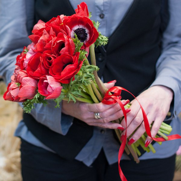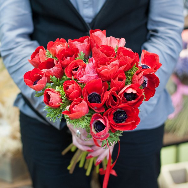 Букет из анемонов "Красные анемоны"(артикул 195-C)