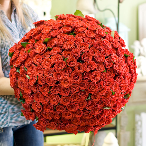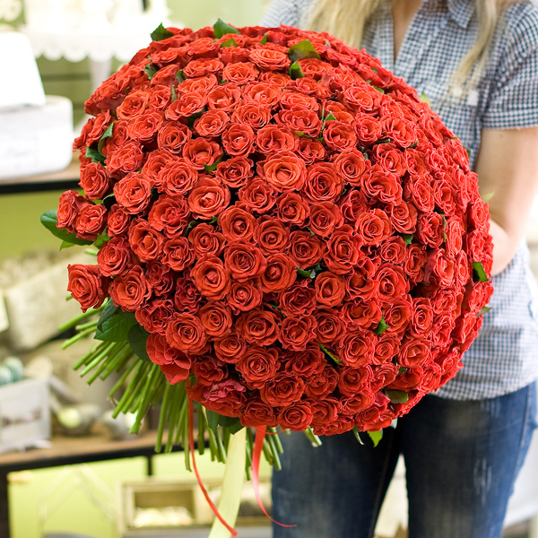 Букет из аллых роз сорта Эль Торро 50 см 201 шт. Доставляется по Москве и Санкт-Петербургу.