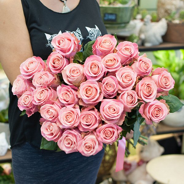 Букет из длинных, крупноголовых эквадорских роз премиум класса сорта "Хермоза" (29 роз).