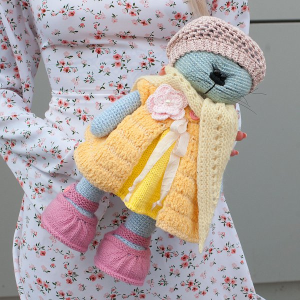 В заключение, игрушка ручной работы "Кошка в желтом сарафане" - это не просто игрушка, это символ любви и заботы, который будет радовать и приносить удовольствие своей обладательнице на протяжении многих лет.