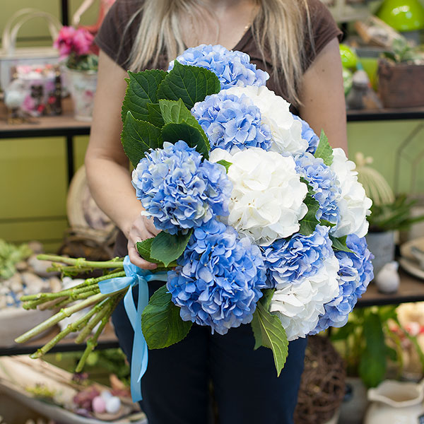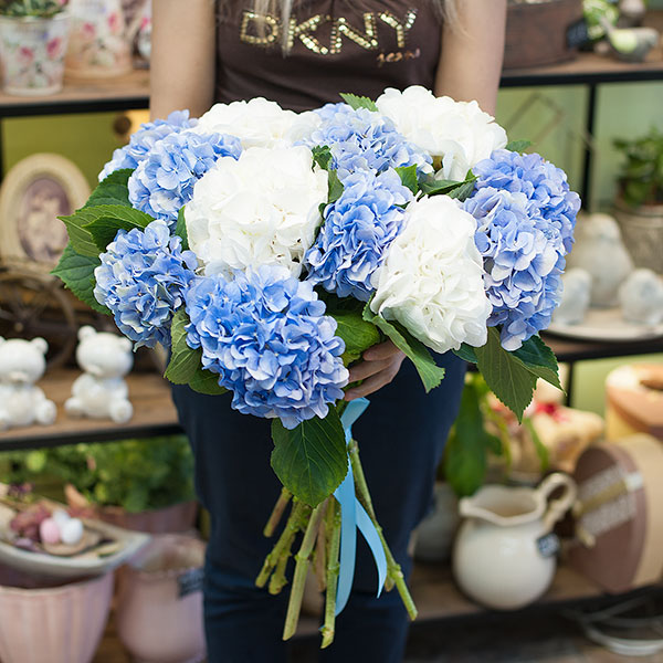 Букет из белой и голубой гортензии (13 шт)(артикул 2038-C)