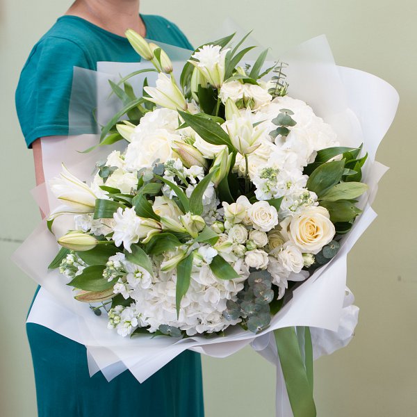 Букет цветов "Белоснежные объятья" – это отличный выбор для любого повода, будь то день рождения, юбилей, свадьба или просто знак внимания.