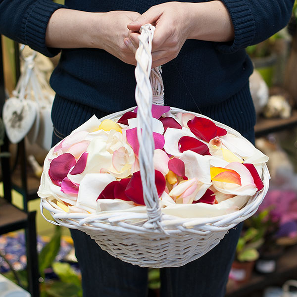 Корзина из лепестков микс. Идеально для свадебного торжества.
