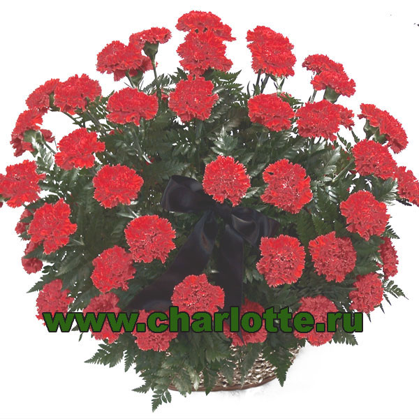Траурная корзина из шестидесяти гвоздик с декоративной зеленью.