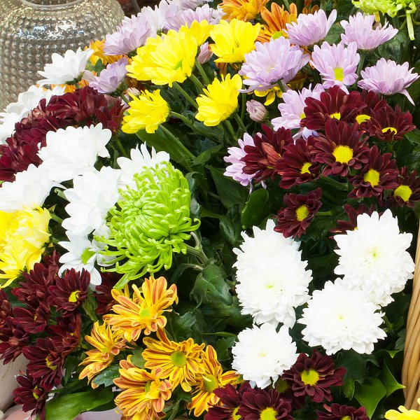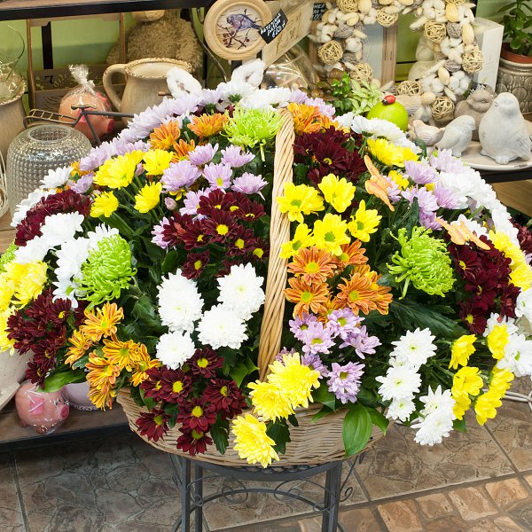 Корзина из хризантем "Разноцветные хризантемы"