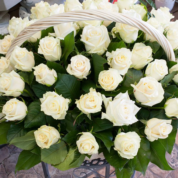 Корзина из белых роз (51 роза)