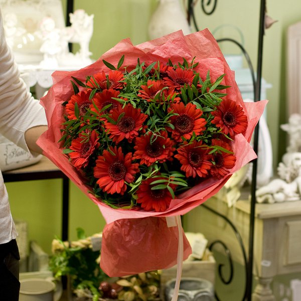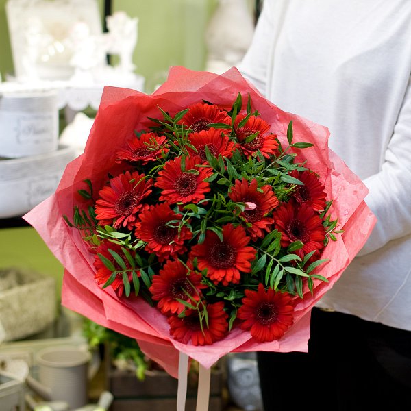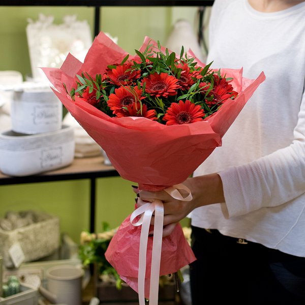 Букет цветов "Красные герберки"(артикул 2178-C)