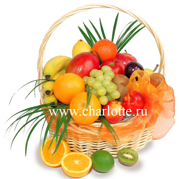 Корзинка из множества фруктов, украшенная декоративной зеленью.По Вашему желанию состав корзинки можно изменить, для этого звоните в наши салоны цветов или указывайте в разделе "комментарии для флористов" при заказе через интернет.