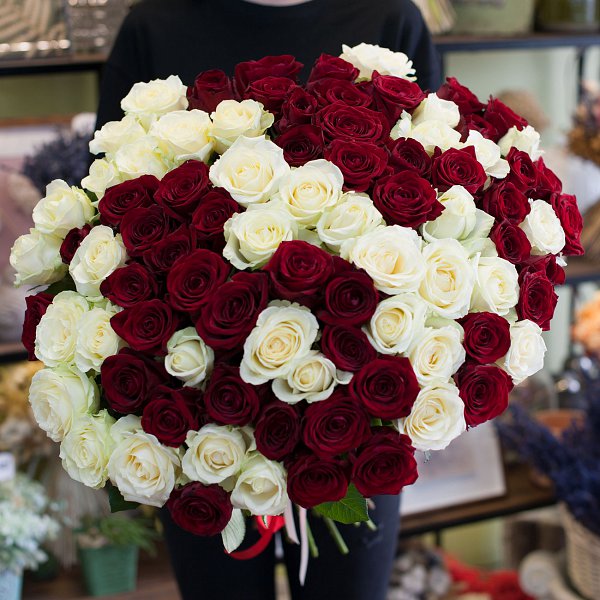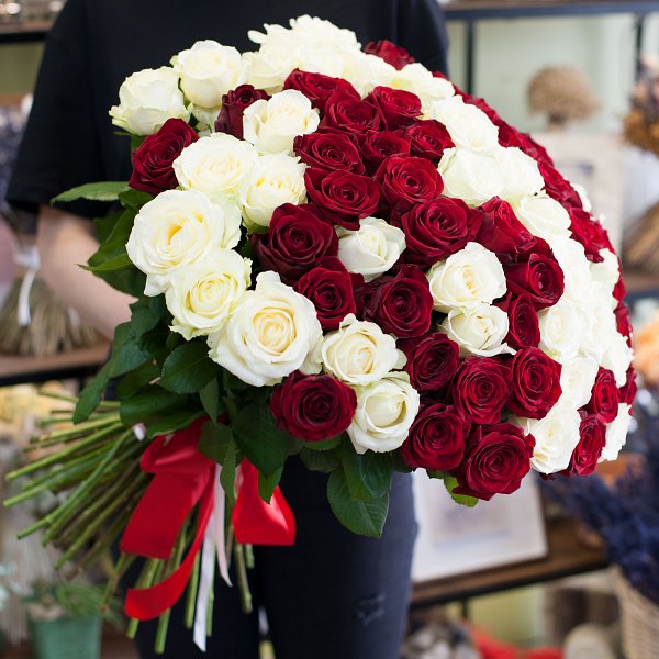 Букет роз "Красно-белый"