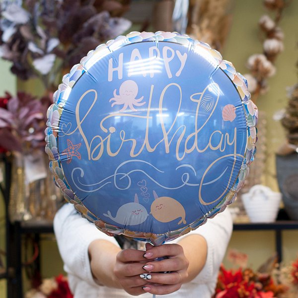 Фольгированный воздушный шар "Happy Birthday"(артикул 2209-C)