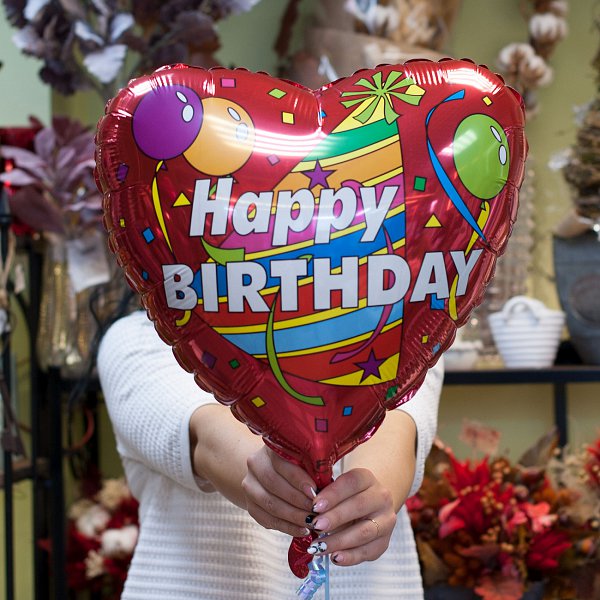 Фольгированный воздушный шарик-сердцем с надписью "Happy bithday", размером 30 см.