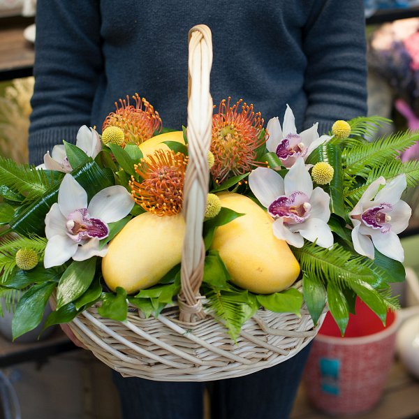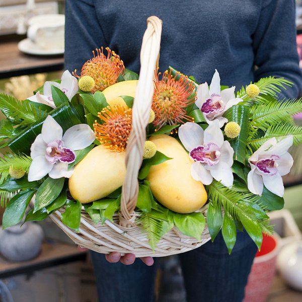 Корзина с цветами и фруктами "Сочный манго"