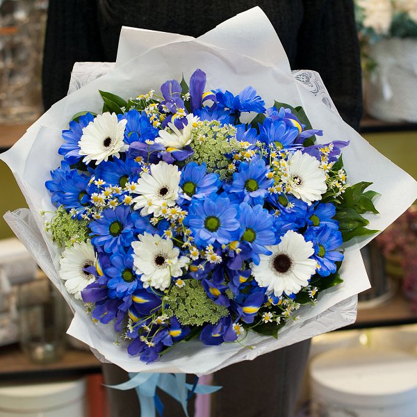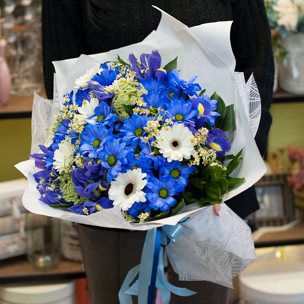 Букет цветов "Васильки-ромашки"(артикул 2240-C)